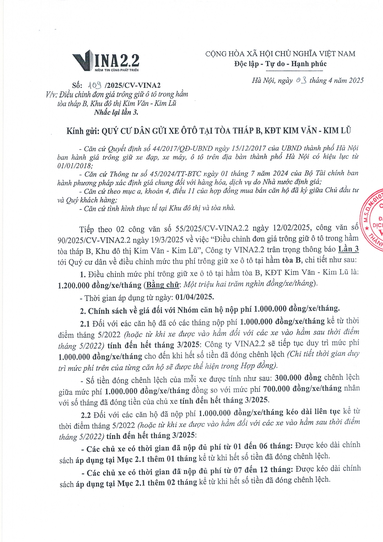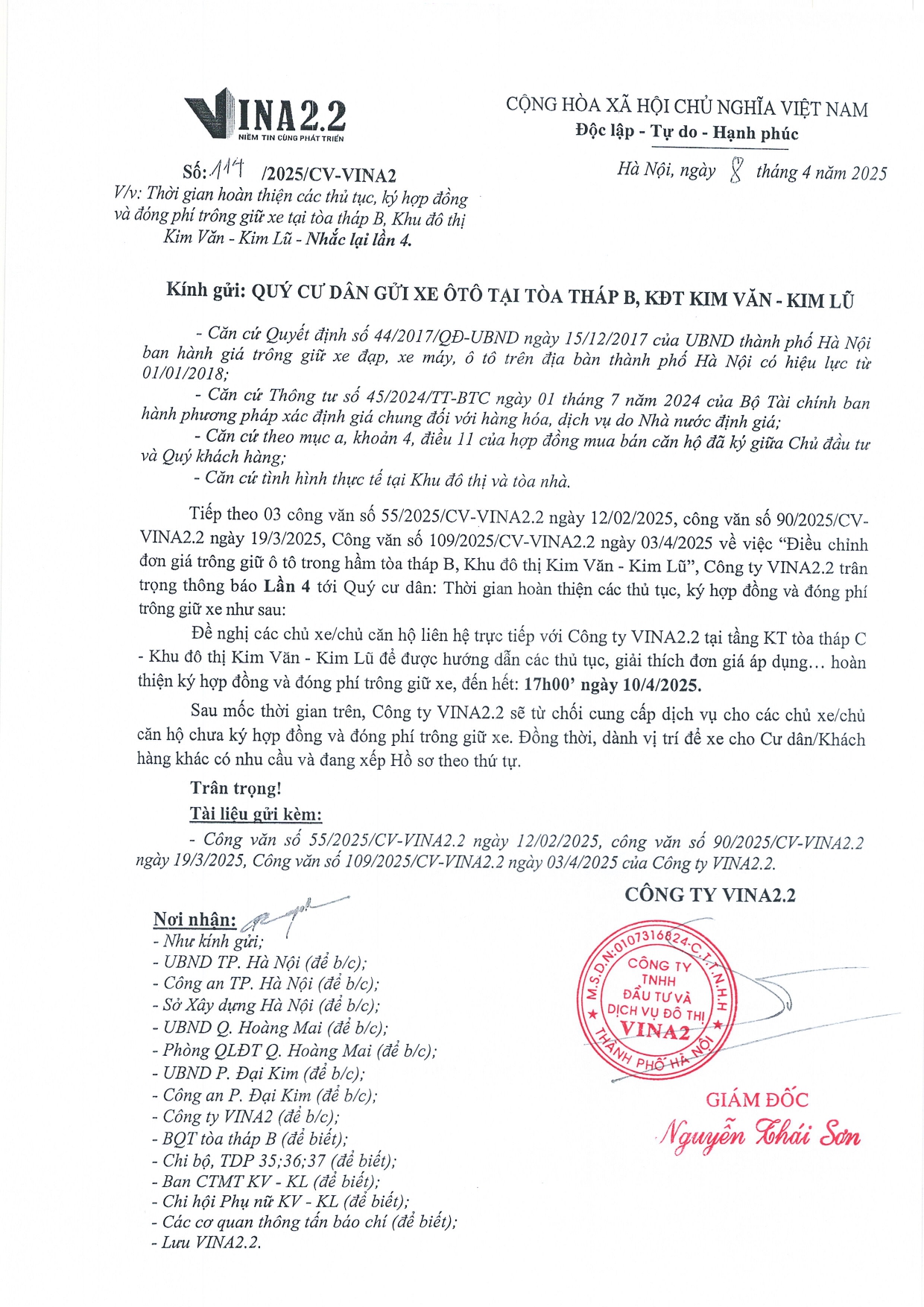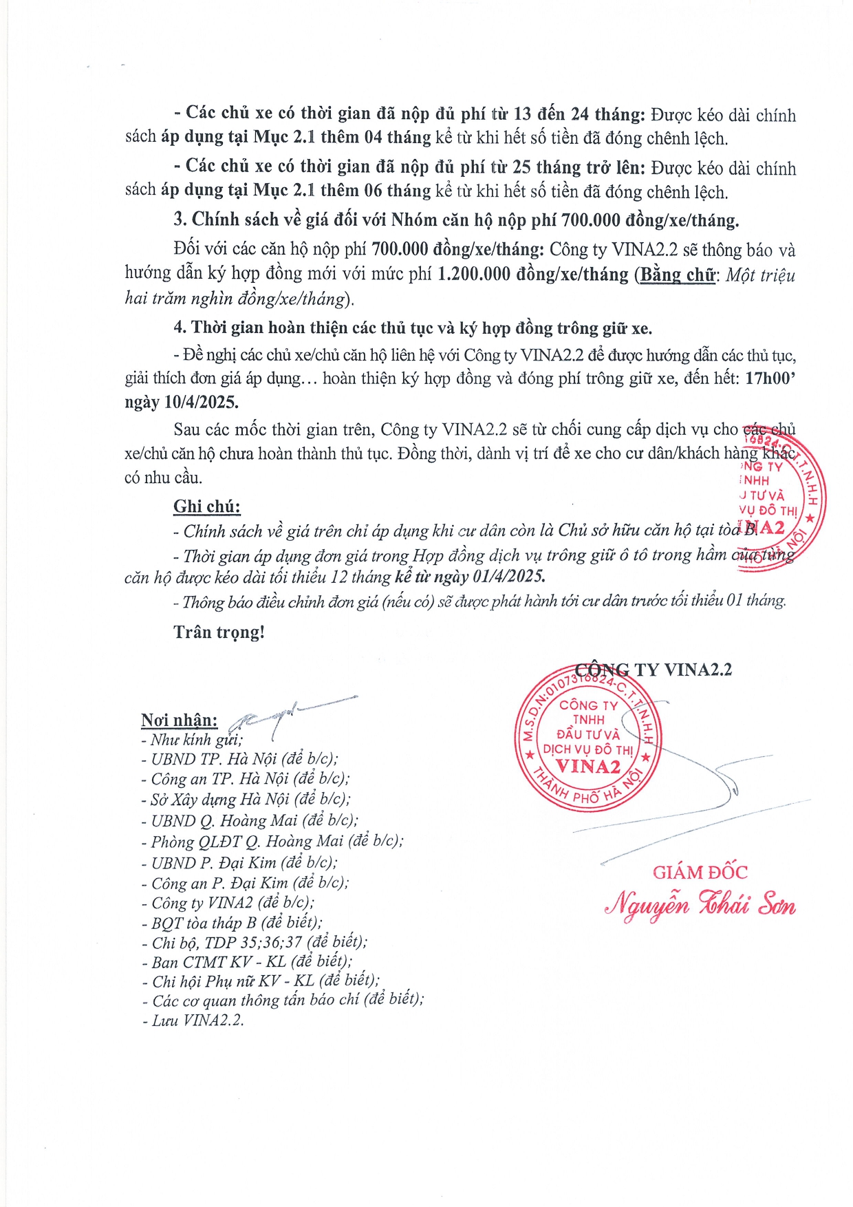 Thông báo về việc ' Thời gian hoàn thiện các thủ tục ký hợp đồng và đóng phí trông giữ xe tại tòa tháp B- lần 4 (1) Chia sẻ: