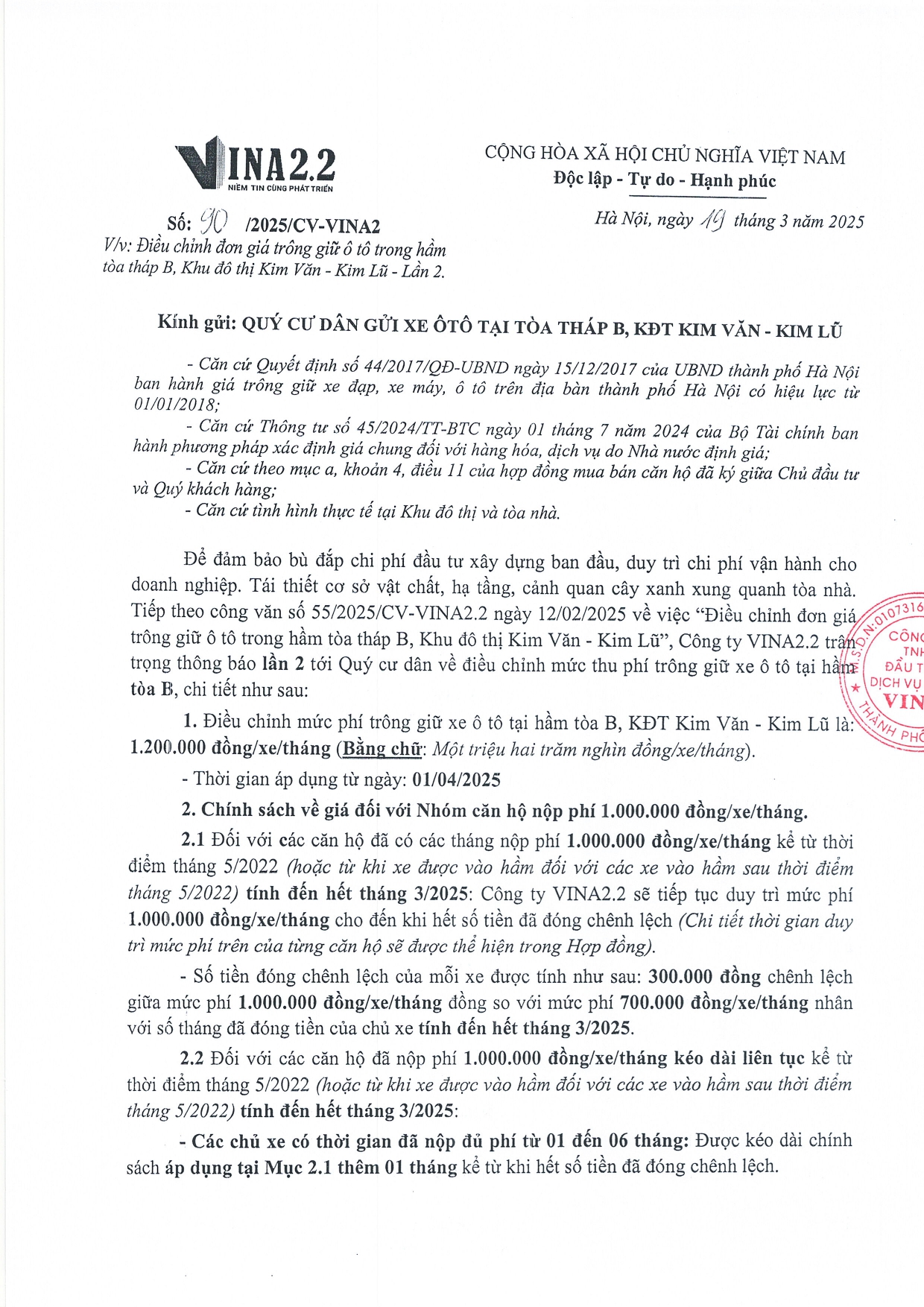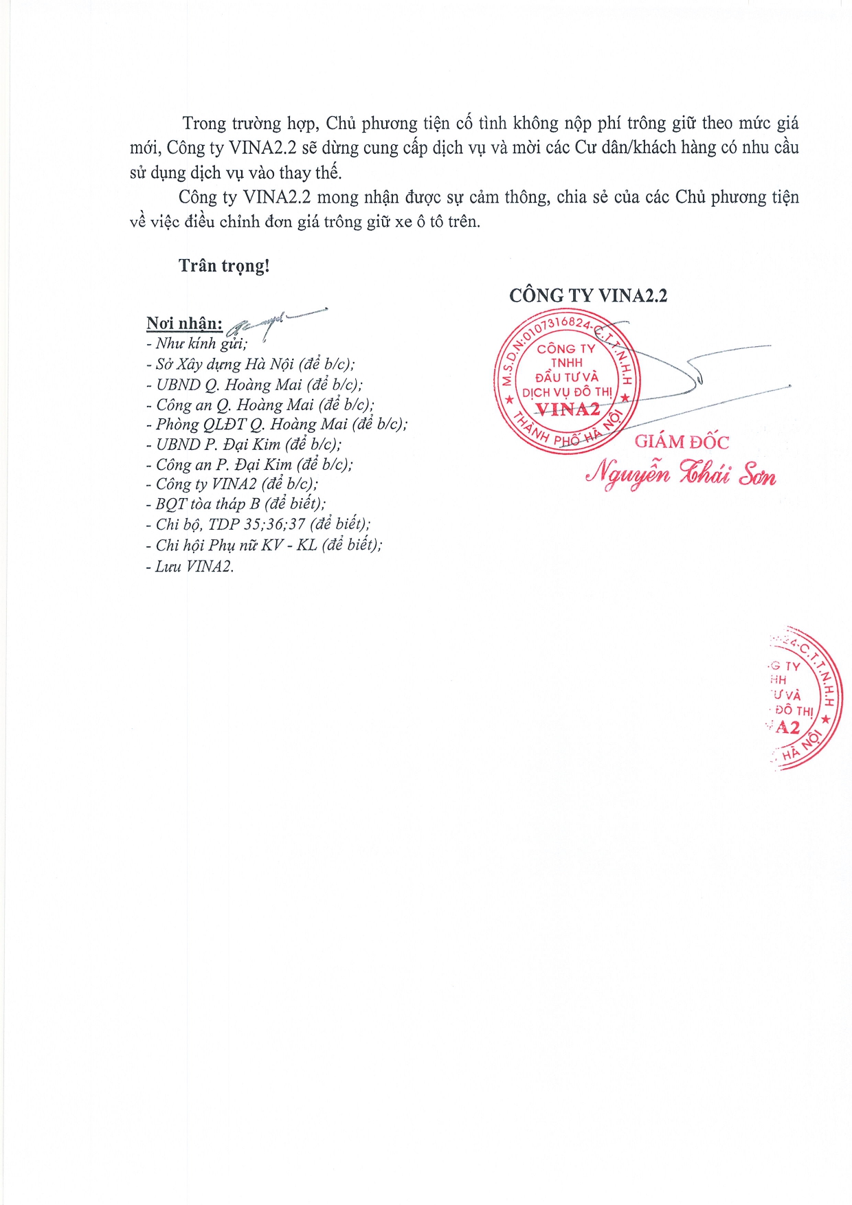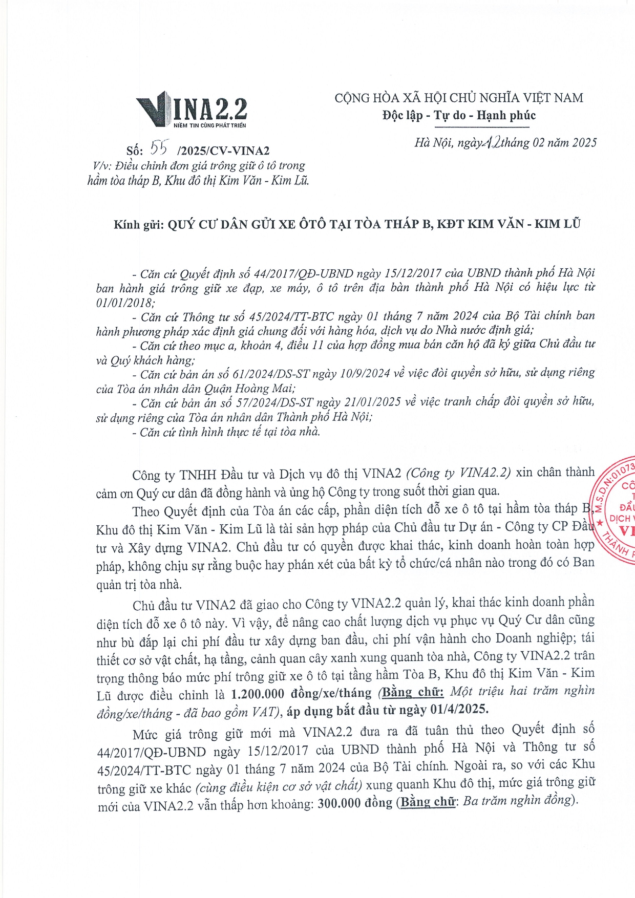 Thông báo về việc ' Thời gian hoàn thiện các thủ tục ký hợp đồng và đóng phí trông giữ xe tại tòa tháp B- lần 4 (1) Chia sẻ: