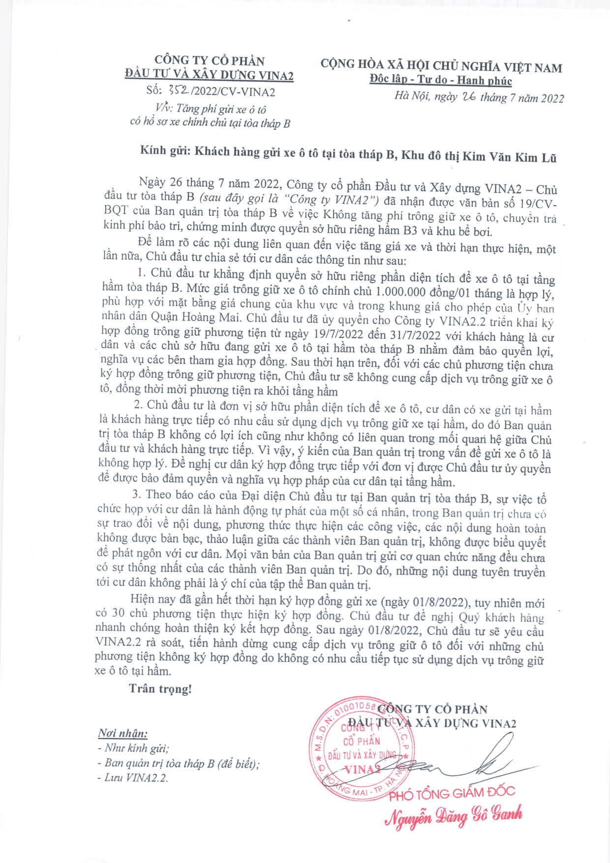 Tăng phí gửi xe ô tô có hồ sơ xe chính chủ tại tòa tháp B